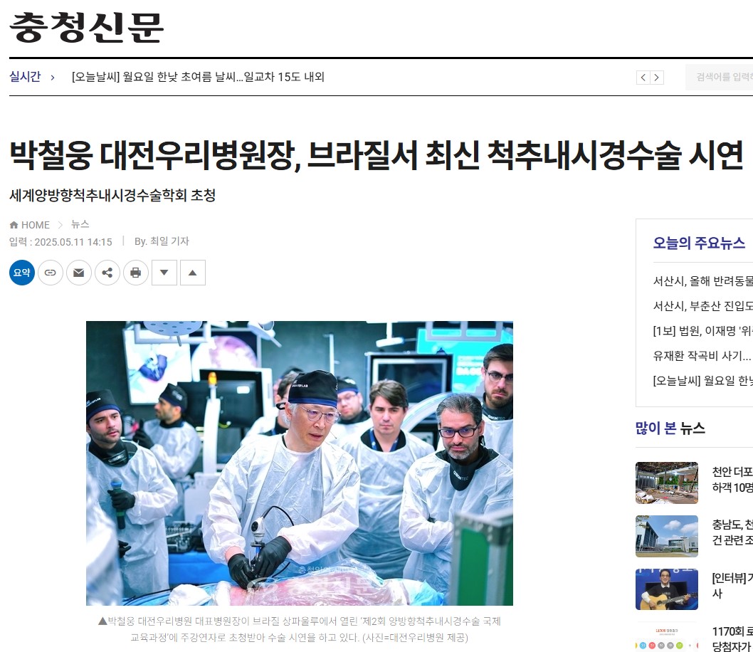 [ÃæÃ»½Å¹®] ¹Úö¿õ ´ëÀü¿ì¸®º´¿øÀå, ºê¶óÁú¼ ÃֽŠôÃß³»½Ã°æ¼ö¼ú ½Ã¿¬
