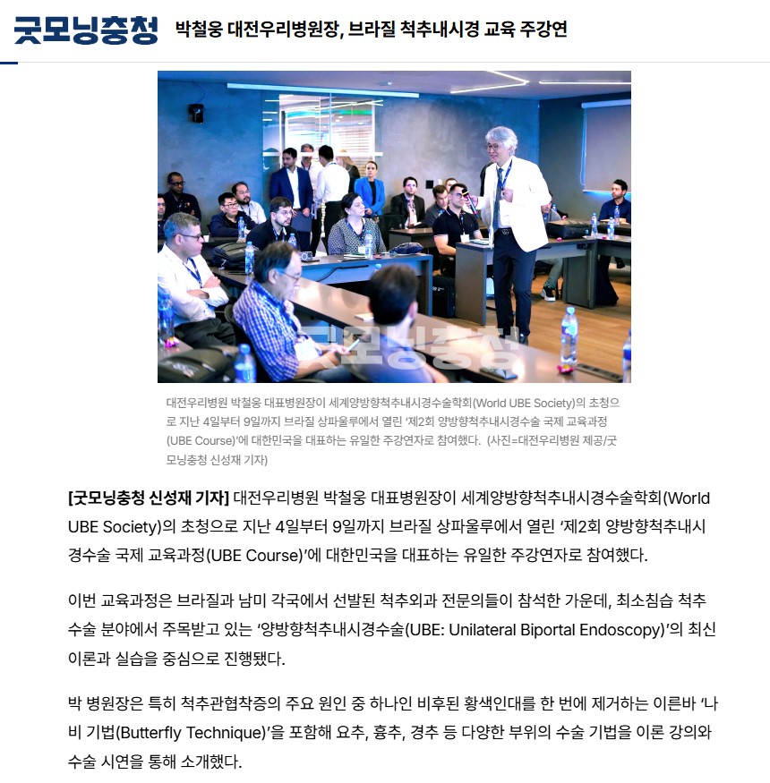 [±Â¸ð´×ÃæÃ»] ¹Úö¿õ ´ëÀü¿ì¸®º´¿øÀå, ºê¶óÁú ôÃß³»½Ã°æ ±³À° ÁÖ°¿¬