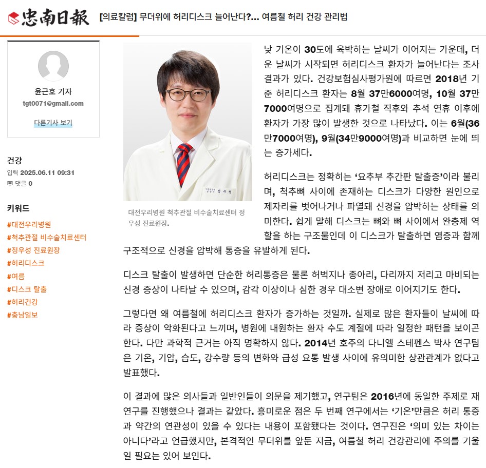 [Ãæ³²ÀϺ¸] [ÀÇ·áÄ®·³] ¹«´õÀ§¿¡ Ç㸮µð½ºÅ© ´Ã¾î³´Ù?¡¦ ¿©¸§Ã¶ Ç㸮 °Ç° °ü¸®¹ý