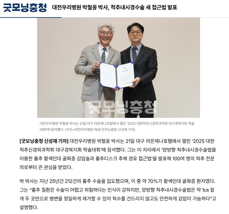 [±Â¸ð´×ÃæÃ»] ´ëÀü¿ì¸®º´¿ø ¹Úö¿õ ¹Ú»ç, ôÃß³»½Ã°æ¼ö¼ú »õ Á¢±Ù¹ý ¹ßÇ¥
