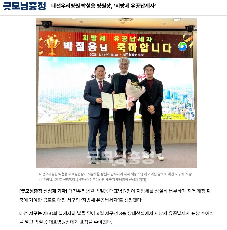 [±Â¸ð´×ÃæÃ»] ´ëÀü¿ì¸®º´¿ø ¹Úö¿õ º´¿øÀå, 'Áö¹æ¼¼ À¯°ø³³¼¼ÀÚ'