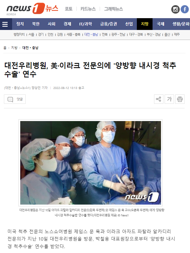 [news1] ´ëÀü¿ì¸®º´¿ø, Ú¸¡¤À̶óÅ© Àü¹®ÀÇ¿¡ '¾ç¹æÇâ ³»½Ã°æ ôÃß ¼ö¼ú' ¿¬¼ö