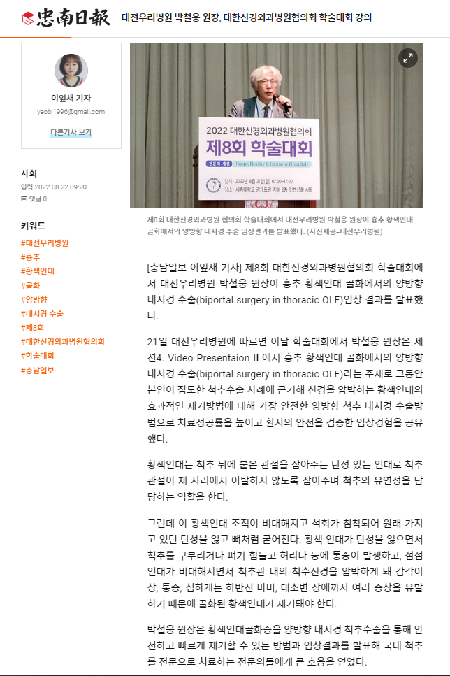 [Ãæ³²ÀϺ¸] ´ëÀü¿ì¸®º´¿ø ¹Úö¿õ ¿øÀå, ´ëÇѽŰæ¿Ü°úº´¿øÇùÀÇȸ Çмú´ëȸ °ÀÇ