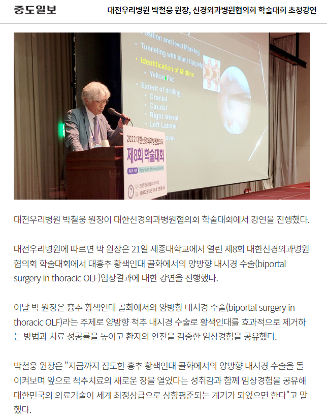 [ÁßµµÀϺ¸] ´ëÀü¿ì¸®º´¿ø ¹Úö¿õ ¿øÀå, ½Å°æ¿Ü°úº´¿øÇùÀÇȸ Çмú´ëȸ ÃÊû°¿¬