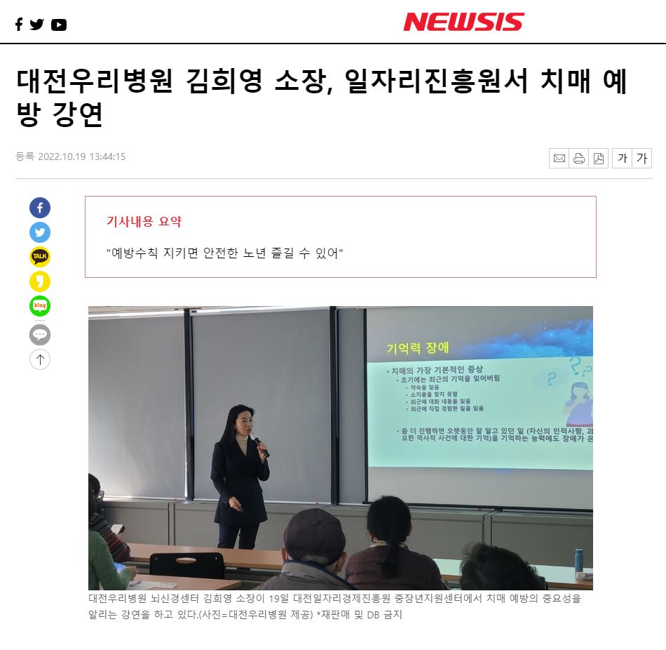 [NEWSIS] ´ëÀü¿ì¸®º´¿ø ±èÈñ¿µ ¼ÒÀå, ÀÏÀÚ¸®ÁøÈï¿ø¼ Ä¡¸Å ¿¹¹æ °¿¬