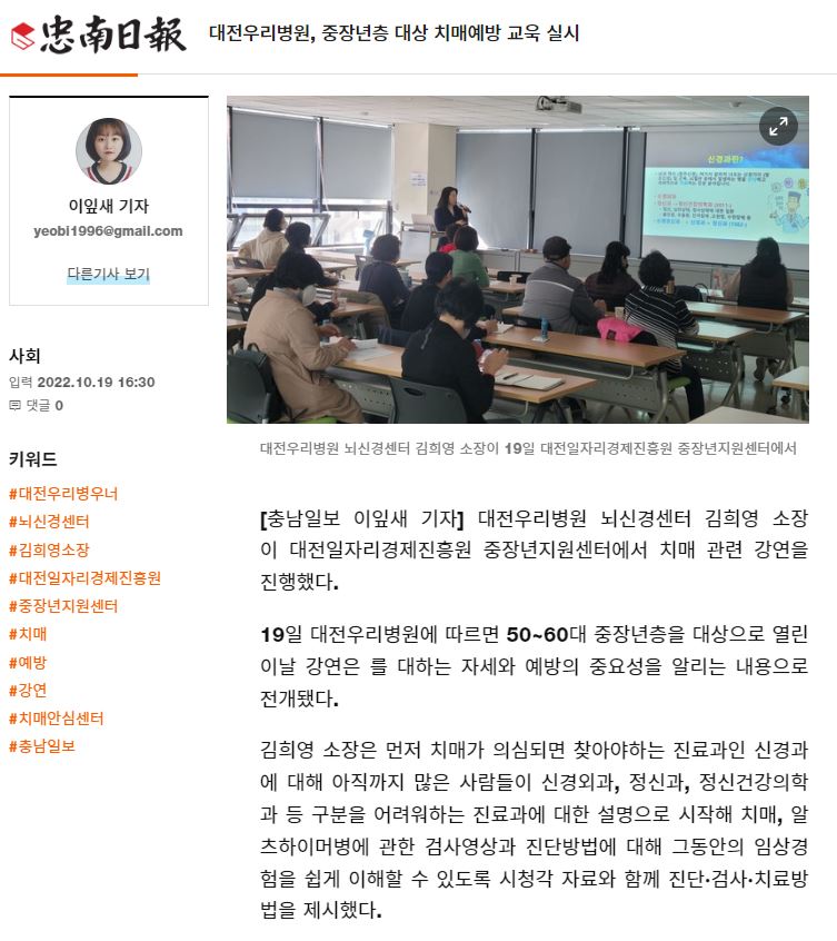 [Ãæ³²ÀϺ¸] ´ëÀü¿ì¸®º´¿ø, ÁßÀå³âÃþ ´ë»ó Ä¡¸Å¿¹¹æ ±³À° ½Ç½Ã