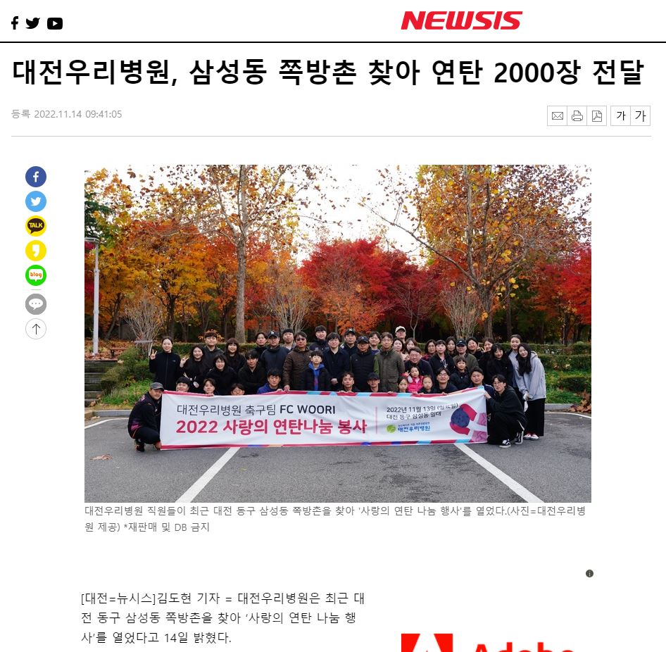 [NEWSIS] ´ëÀü¿ì¸®º´¿ø, »ï¼ºµ¿ ÂʹæÃÌ Ã£¾Æ ¿¬Åº 2000Àå Àü´Þ