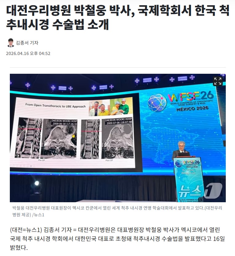 [´º½º¿ø] ´ëÀü¿ì¸®º´¿ø ¹Úö¿õ ¹Ú»ç, ±¹Á¦ÇÐȸ¼ Çѱ¹ ôÃß³»½Ã°æ ¼ö¼ú¹ý ¼Ò°³