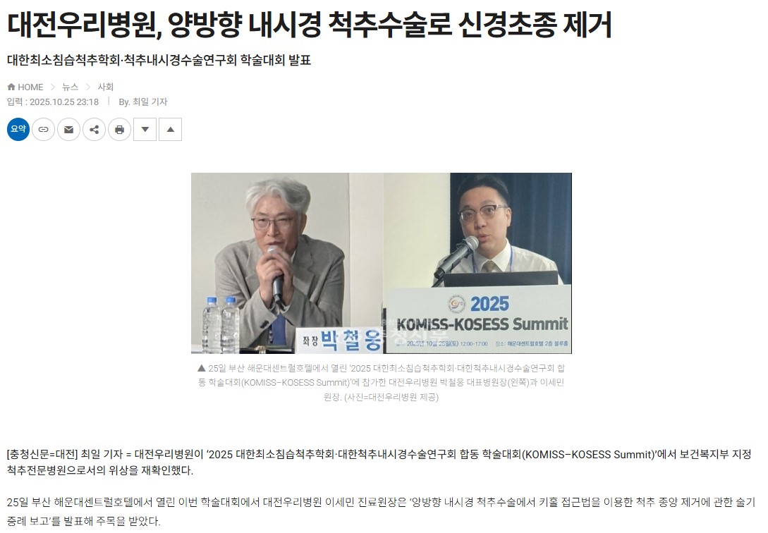 [ÃæÃ»½Å¹®] ´ëÀü¿ì¸®º´¿ø, ¾ç¹æÇâ ³»½Ã°æ ôÃß¼ö¼ú·Î ½Å°æÃÊÁ¾ Á¦°Å