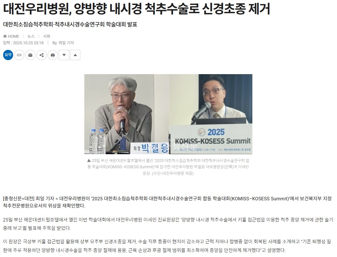 [ÃæÃ»½Å¹®] ´ëÀü¿ì¸®º´¿ø, ¾ç¹æÇâ ³»½Ã°æ ôÃß¼ö¼ú·Î ½Å°æÃÊÁ¾ Á¦°Å