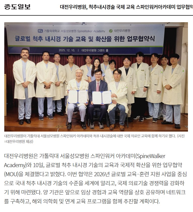 [ÁßµµÀϺ¸] ´ëÀü¿ì¸®º´¿ø, ôÃß³»½Ã°æ¼ú ±¹Á¦ ±³À° ½ºÆÄÀοöÄ¿¾ÆÄ«µ¥¹Ì ¾÷¹«Çù¾à