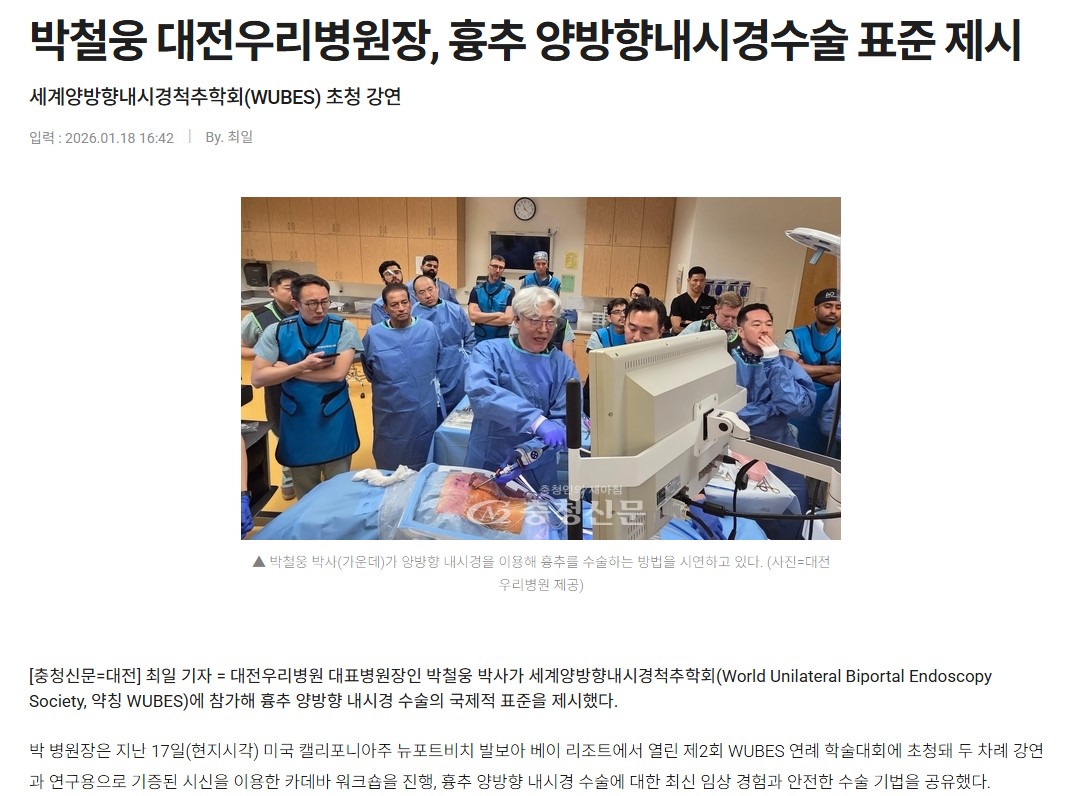 [ÃæÃ»½Å¹®] ¹Úö¿õ ´ëÀü¿ì¸®º´¿øÀå, ÈäÃß ¾ç¹æÇâ³»½Ã°æ¼ö¼ú Ç¥ÁØ Á¦½Ã