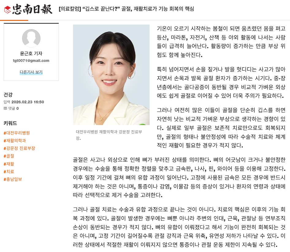 [Ãæ³²ÀϺ¸] [ÀÇ·áÄ®·³] ¡°±é½º·Î ³¡³´Ù?¡± °ñÀý, ÀçȰġ·á°¡ ±â´É ȸº¹ÀÇ ÇÙ½É