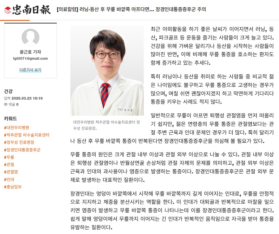 [Ãæ³²ÀϺ¸] [ÀÇ·áÄ®·³] ·¯´×¡¤µî»ê ÈÄ ¹«¸ ¹Ù±ùÂÊ ¾ÆÇÁ´Ù¸é¡¦ Àå°æÀδëÅëÁõÁõÈıº ÁÖÀÇ