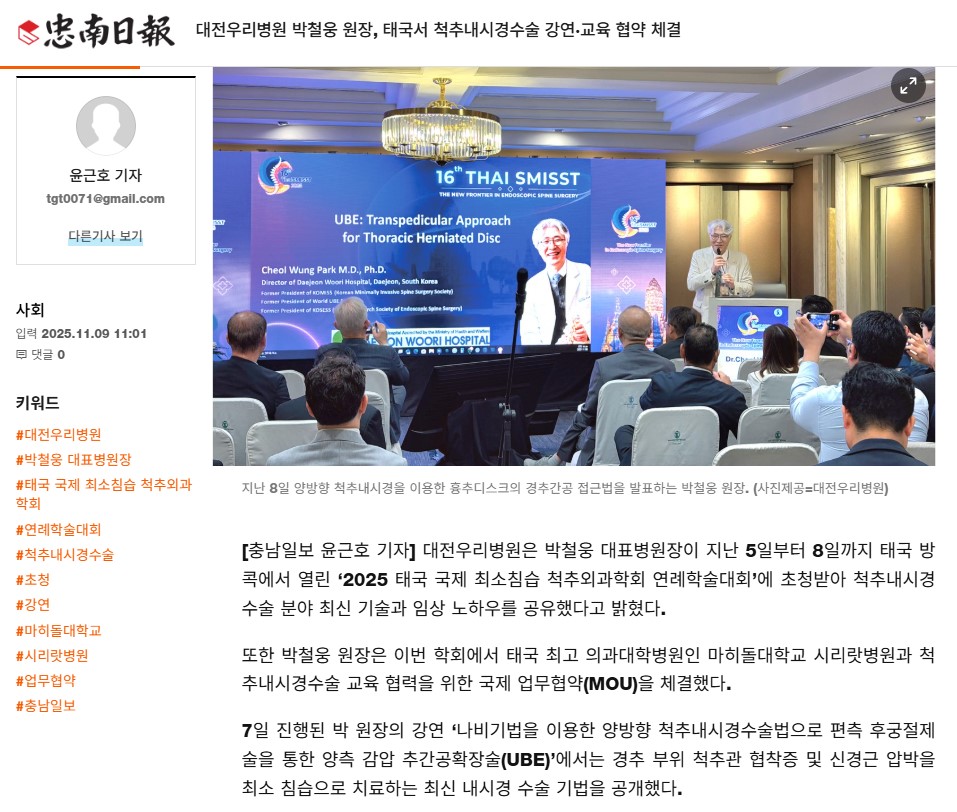 [Ãæ³²ÀϺ¸] ´ëÀü¿ì¸®º´¿ø ¹Úö¿õ ¿øÀå, ű¹¼ ôÃß³»½Ã°æ¼ö¼ú °¿¬¡¤±³À° Çù¾à ü°á