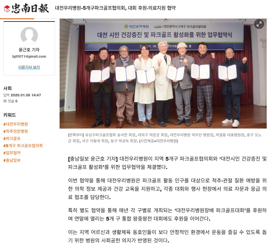 [Ãæ³²ÀϺ¸] ´ëÀü¿ì¸®º´¿ø-5°³±¸ÆÄÅ©°ñÇÁÇùÀÇȸ, ´ëȸ ÈÄ¿ø¡¤ÀÇ·áÁö¿ø Çù¾à