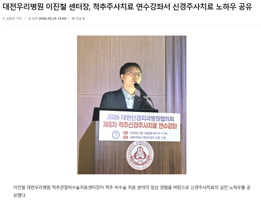 [±Ý°ÀϺ¸] ´ëÀü¿ì¸®º´¿ø ÀÌÁøÃ¶ ¼¾ÅÍÀå, ôÃßÁÖ»çÄ¡·á ¿¬¼ö°Á¼ ½Å°æÁÖ»çÄ¡·á ³ëÇÏ¿ì °øÀ¯