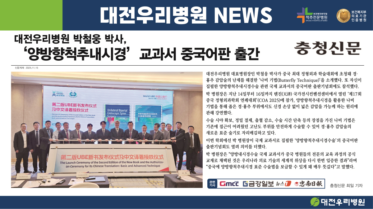 251115 ¹Úö¿õ ´ëÀü¿ì¸®º´¿øÀå ¡®¾ç¹æÇâôÃß³»½Ã°æ¡¯ ±³°ú¼ Áß±¹¾îÆÇ Ãâ°£