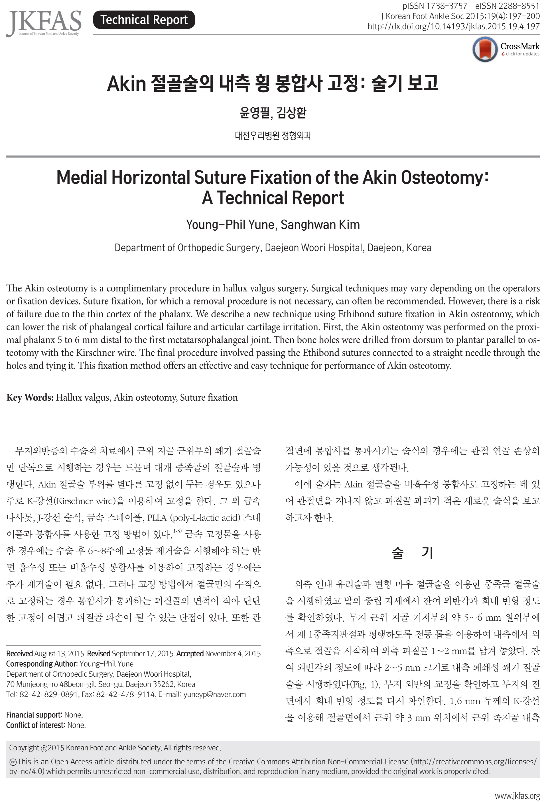 Akin Àý°ñ¼úÀÇ ³»Ãø Ⱦ ºÀÇÕ»ç °íÁ¤: ¼ú±â º¸°í