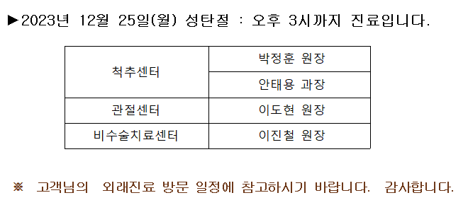 ¡Ø 2023³â 12¿ù 25ÀÏ(¿ù) ¼ºÅºÀý : ¿Ü·¡Áø·á ¾È³»ÀÔ´Ï´Ù.