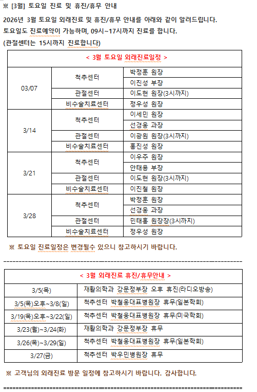 ¡Ø [3¿ù] Åä¿äÀÏ Áø·á ¹× ÈÞÁø/ÈÞ¹« ¾È³»