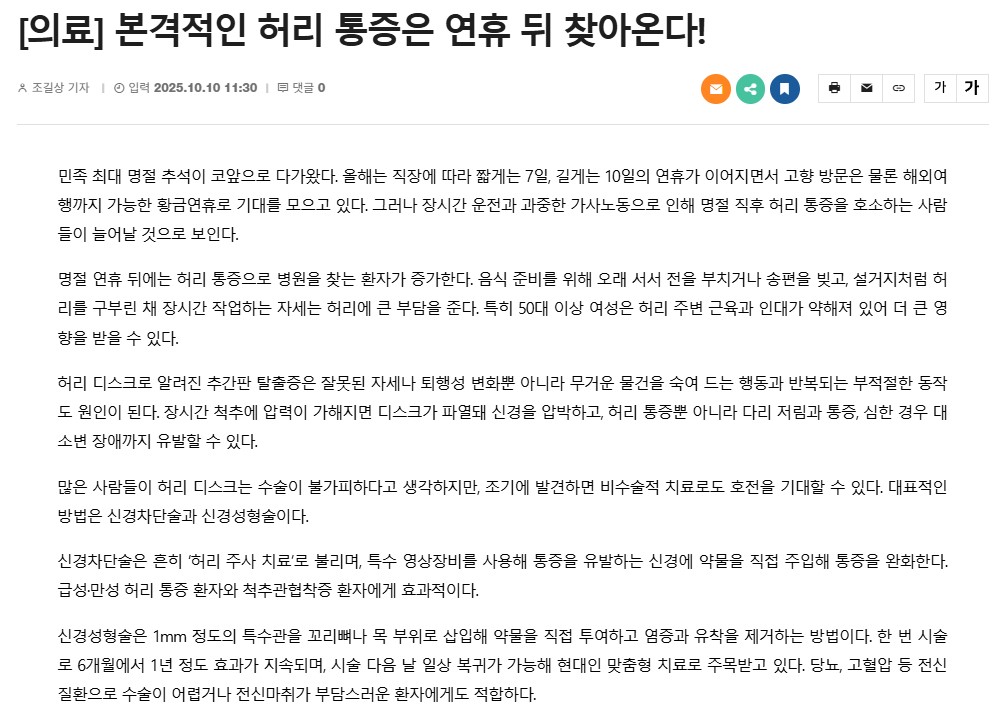 [±Ý°ÀϺ¸] [ÀÇ·á] º»°ÝÀûÀÎ Ç㸮 ÅëÁõÀº ¿¬ÈÞ µÚ ã¾Æ¿Â´Ù!