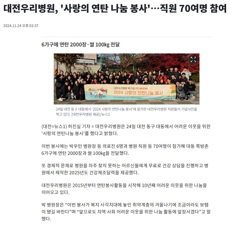 [´º½º1] ´ëÀü¿ì¸®º´¿ø, '»ç¶ûÀÇ ¿¬Åº ³ª´® ºÀ»ç'¡¦Á÷¿ø 70¿©¸í Âü¿©