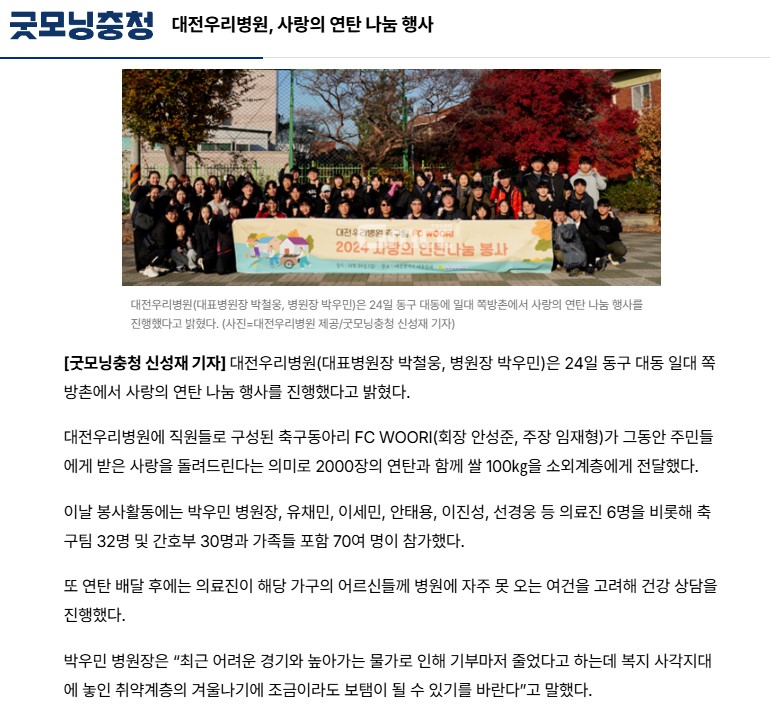 [±Â¸ð´×ÃæÃ»] ´ëÀü¿ì¸®º´¿ø, »ç¶ûÀÇ ¿¬Åº ³ª´® Çà»ç