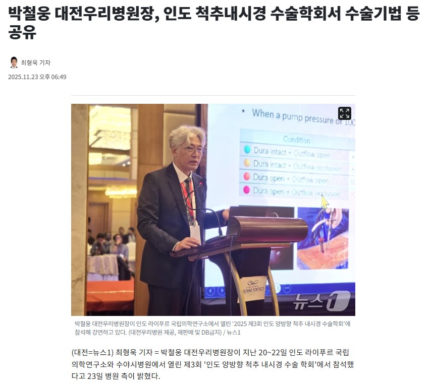 [´º½º1] ¹Úö¿õ ´ëÀü¿ì¸®º´¿øÀå, Àεµ ôÃß³»½Ã°æ ¼ö¼úÇÐȸ¼ ¼ö¼ú±â¹ý µî °øÀ¯