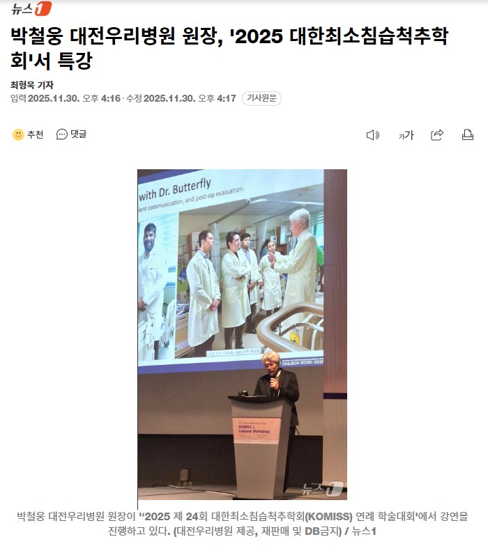 [´º½º1] ¹Úö¿õ ´ëÀü¿ì¸®º´¿ø ¿øÀå, '2025 ´ëÇÑÃÖ¼Òħ½ÀôÃßÇÐȸ'¼ Ư°