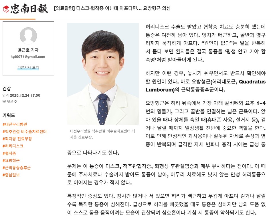 [Ãæ³²ÀϺ¸] [ÀÇ·áÄ®·³] µð½ºÅ©¡¤ÇùÂøÁõ ¾Æ´Ñµ¥ ¾ÆÇÁ´Ù¸é¡¦ ¿ä¹æÇü±Ù ÀǽÉ