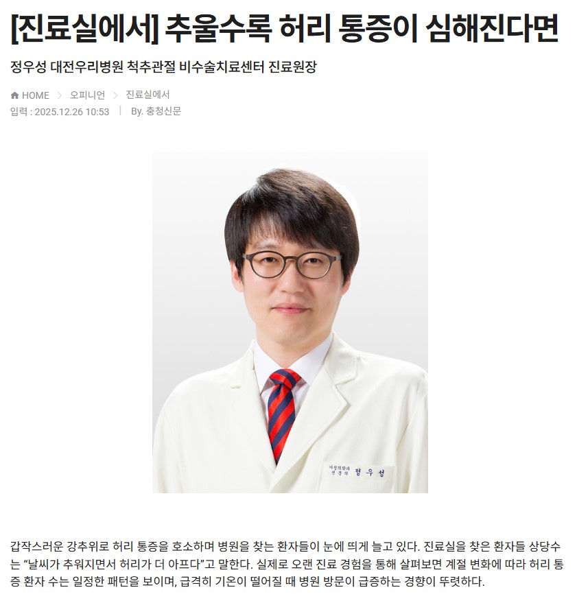[ÃæÃ»½Å¹®] [Áø·á½Ç¿¡¼] Ãß¿ï¼ö·Ï Ç㸮 ÅëÁõÀÌ ½ÉÇØÁø´Ù¸é