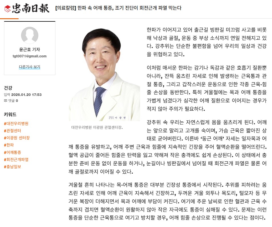 [Ãæ³²ÀϺ¸] [ÀÇ·áÄ®·³] ÇÑÆÄ ¼Ó ¾î±ú ÅëÁõ, Á¶±â Áø´ÜÀÌ È¸Àü±Ù°³ ÆÄ¿ ¸·´Â´Ù