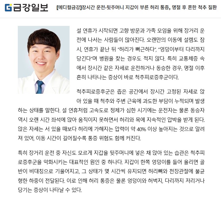 [±Ý°ÀϺ¸] [¸ÞµðÄñݰ]Àå½Ã°£ ¿îÀü¡¤µÞÁÖ¸Ó´Ï Áö°©ÀÌ ºÎ¸¥ Ç㸮 ÅëÁõ, ¸íÀý ÈÄ ÈçÇÑ Ã´Ãß Áúȯ