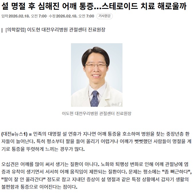 [´º½º¿ø] ¼³ ¸íÀý ÈÄ ½ÉÇØÁø ¾î±ú ÅëÁõ¡¦½ºÅ×·ÎÀ̵å Ä¡·á ÇØ·Î¿ï±î