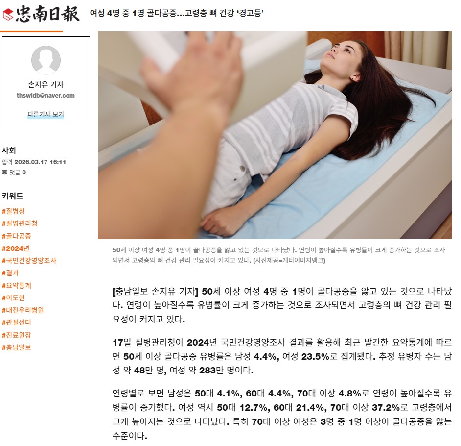 [Ãæ³²ÀϺ¸] ¿©¼º 4¸í Áß 1¸í °ñ´Ù°øÁõ¡¦°í·ÉÃþ »À °Ç° ¡®°æ°íµî¡¯