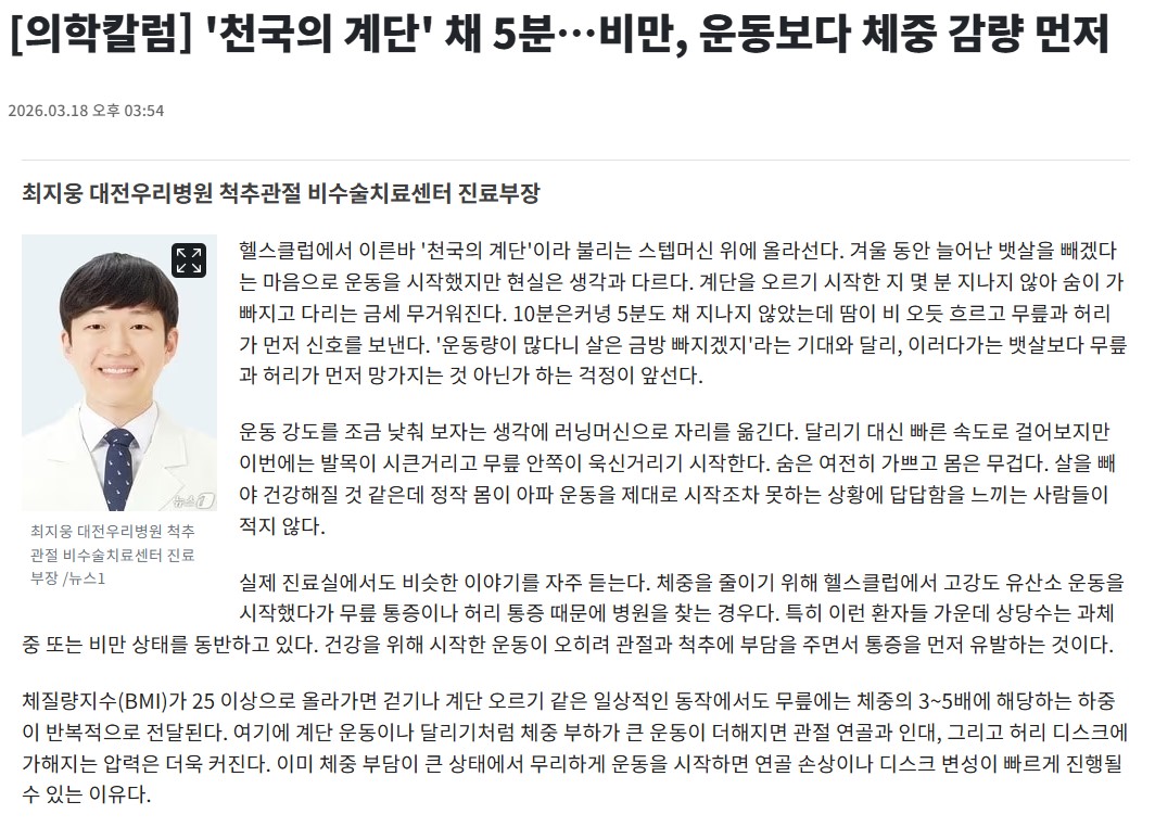 [´º½º¿ø] [ÀÇÇÐÄ®·³] 'õ±¹ÀÇ °è´Ü' ä 5ºÐ¡¦ºñ¸¸, ¿îµ¿º¸´Ù üÁß °¨·® ¸ÕÀú