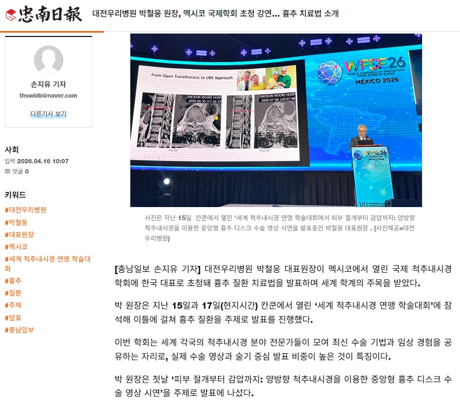 [Ãæ³²ÀϺ¸] ´ëÀü¿ì¸®º´¿ø ¹Úö¿õ ¿øÀå, ¸ß½ÃÄÚ ±¹Á¦ÇÐȸ ÃÊû °¿¬¡¦ ÈäÃß Ä¡·á¹ý ¼Ò°³