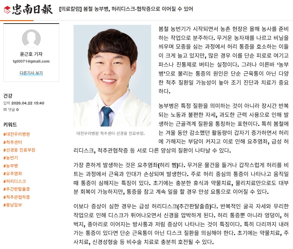 [Ãæ³²ÀϺ¸] [ÀÇ·áÄ®·³] º½Ã¶ ³óºÎº´, Ç㸮µð½ºÅ©¡¤ÇùÂøÁõÀ¸·Î À̾îÁú ¼ö ÀÖ¾î