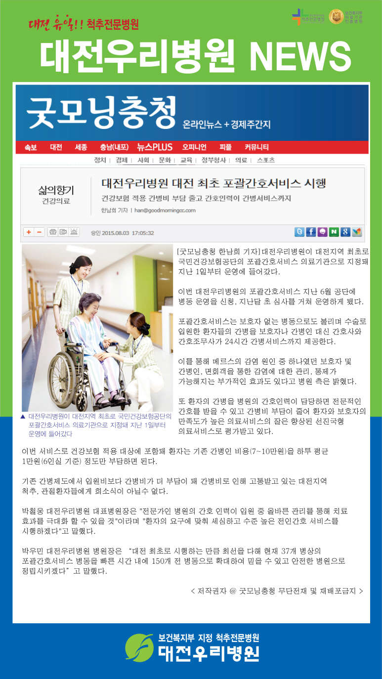 [±Â¸ð´×ÃæÃ»] ´ëÀü¿ì¸®º´¿ø ´ëÀü ÃÖÃÊ Æ÷°ý°£È£¼ºñ½º ½ÃÇà