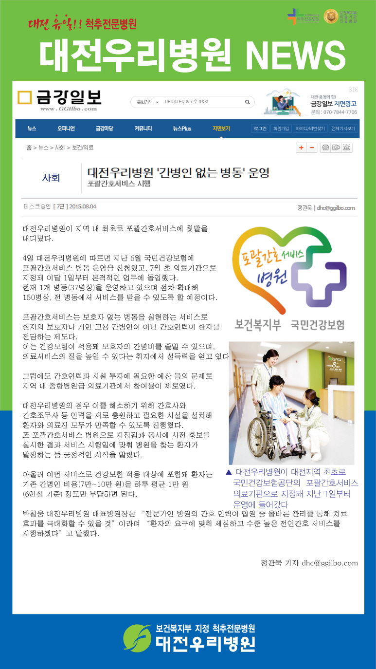 [±Ý°ÀϺ¸] ´ëÀü¿ì¸®º´¿ø '°£º´ÀÎ ¾ø´Â º´µ¿' ¿î¿µ