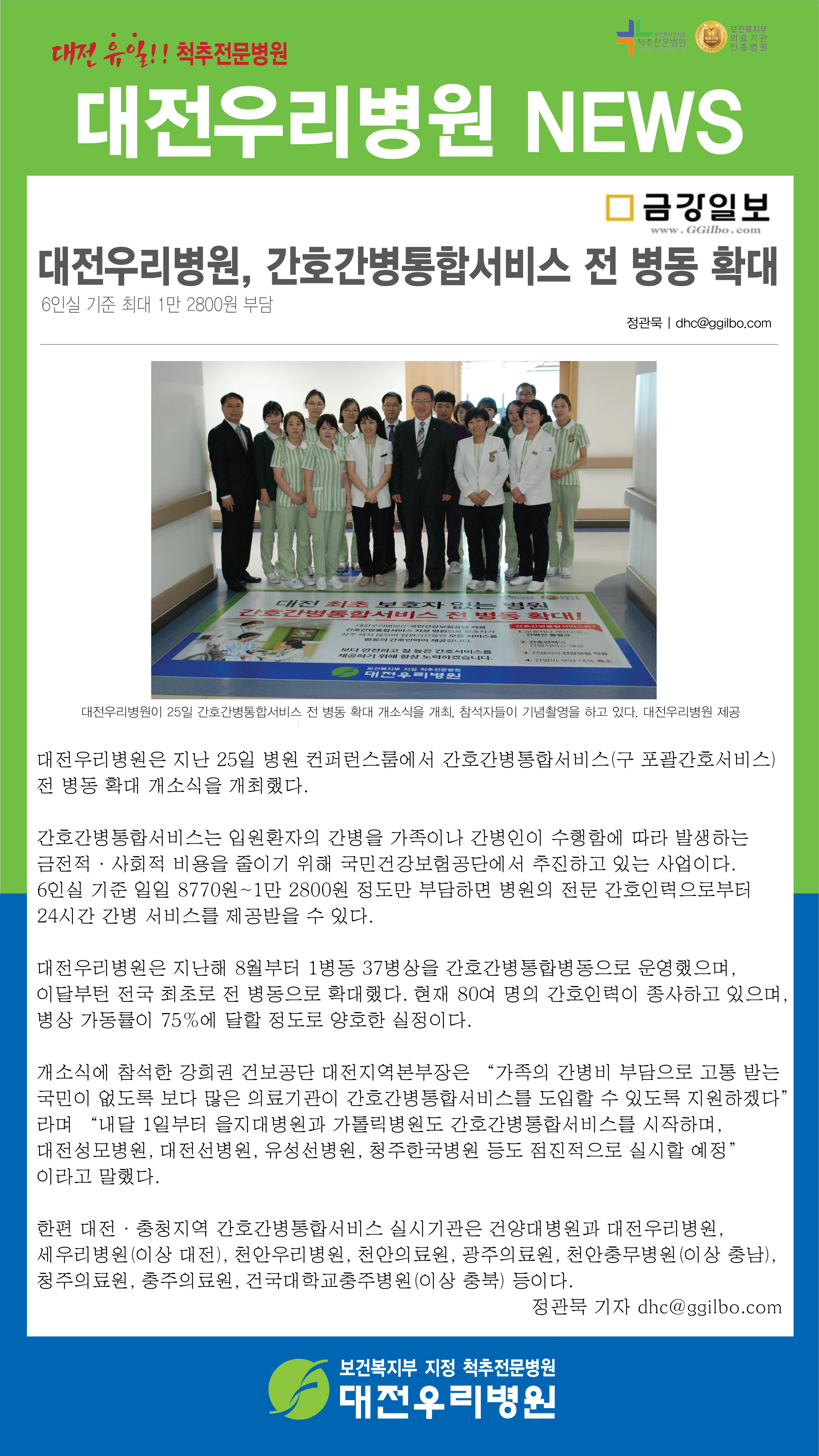 [±Ý°ÀϺ¸] ´ëÀü¿ì¸®º´¿ø, °£È£°£º´ÅëÇÕ¼ºñ½º Àü º´µ¿ È®´ë