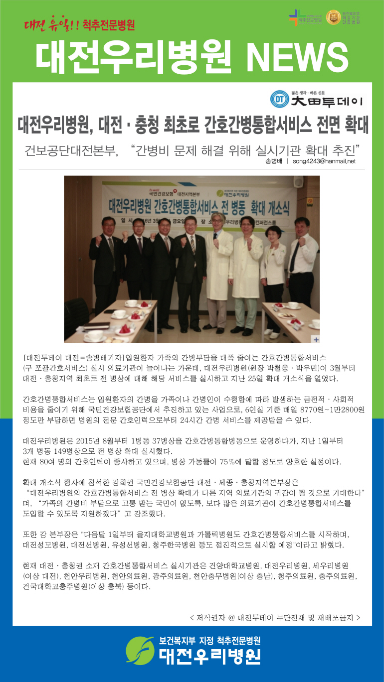 [´ëÀüÅõµ¥ÀÌ] ´ëÀü¿ì¸®º´¿ø, ´ëÀü‧ÃæÃ» ÃÖÃÊ·Î °£È£°£º´ÅëÇÕ¼ºñ½º Àü¸é È®´ë