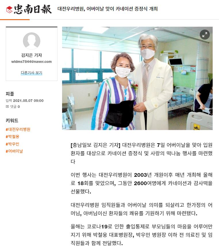 [Ãæ³²ÀϺ¸] 210507 ´ëÀü¿ì¸®º´¿ø, ¾î¹öÀ̳¯ ¸ÂÀÌ Ä«³×ÀÌ¼Ç ÁõÁ¤½Ä °³ÃÖ