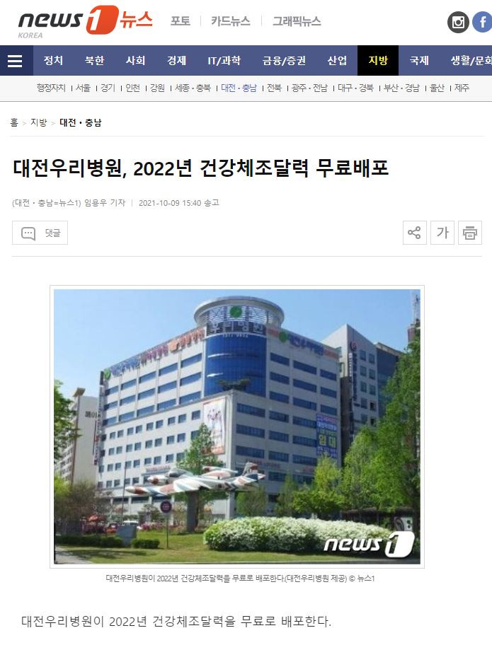 [news1] 211009 ´ëÀü¿ì¸®º´¿ø, 2022³â °Ç°Ã¼Á¶´Þ·Â ¹«·á¹èÆ÷