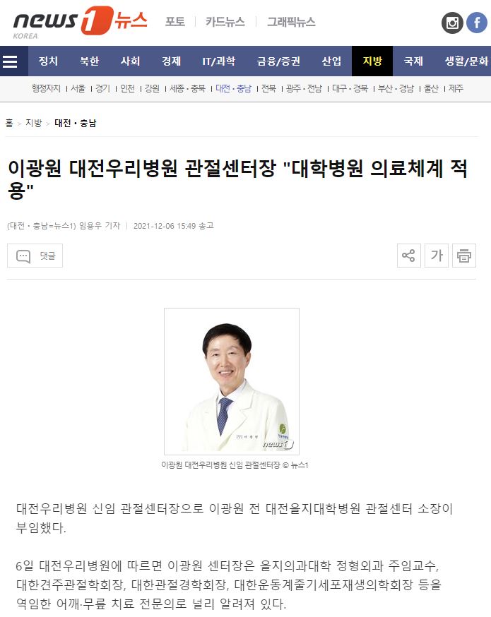 [news1] 211206 À̱¤¿ø ´ëÀü¿ì¸®º´¿ø °üÀý¼¾ÅÍÀå "´ëÇк´¿ø ÀÇ·áü°è Àû¿ë"