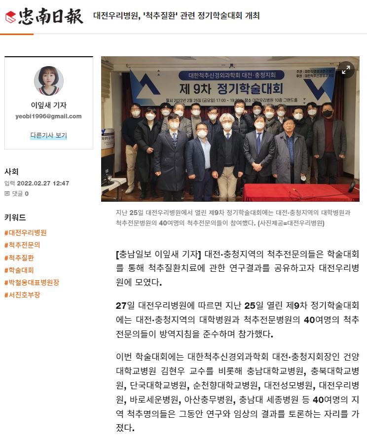 [Ãæ³²ÀϺ¸] ´ëÀü¿ì¸®º´¿ø, 'ôÃßÁúȯ' °ü·Ã Á¤±âÇмú´ëȸ °³ÃÖ