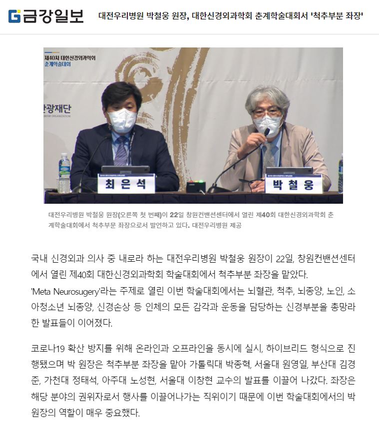 [±Ý°ÀϺ¸] ´ëÀü¿ì¸®º´¿ø ¹Úö¿õ ¿øÀå, ´ëÇѽŰæ¿Ü°úÇÐȸ Ãá°èÇмú´ëȸ¼ 'ôÃߺκРÁÂÀå'