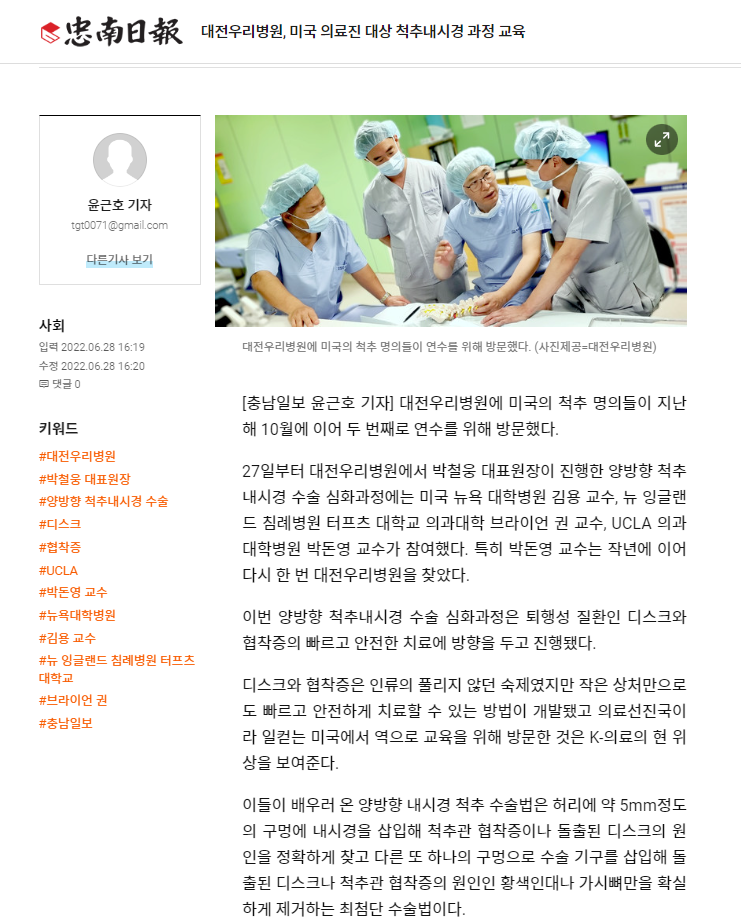 [Ãæ³²ÀϺ¸] ´ëÀü¿ì¸®º´¿ø, ¹Ì±¹ ÀÇ·áÁø ´ë»ó ôÃß³»½Ã°æ °úÁ¤ ±³À°