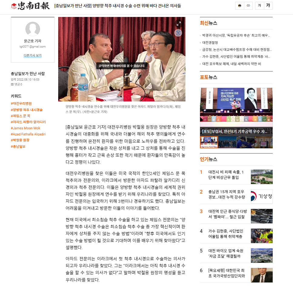 [Ãæ³²ÀϺ¸] [Ãæ³²ÀϺ¸°¡ ¸¸³ »ç¶÷] ¾ç¹æÇâ ôÃß ³»½Ã°æ ¼ö¼ú ¼ö·Ã À§ÇØ ¹Ù´Ù °Ç³Ê¿Â ÀÇ»çµé